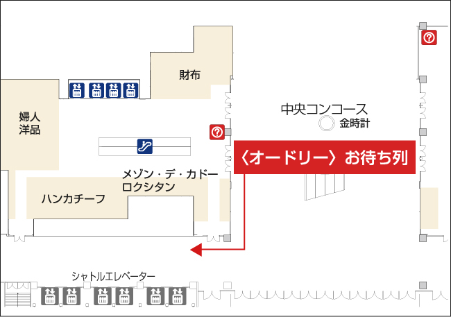 予約をしていない方は、開店後に11階中央エレベーター前にお並びいただきます。