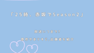 ドラマ 「25時、赤坂でSeason2」放送いつまで?原作やあらすじ,出演者を紹介 芸能界を舞台に俳優同士の切なくも甘いラブストーリーを描いた「25時、赤坂で」が、待望のシーズン2として帰ってきます。前作は国内だけでなく海外でも大きな話題を呼び、続編を望む声が多数寄せられていました。W主演を務めるのは、駒木根葵汰(こまぎね... 2025.09.19 ドラマ
