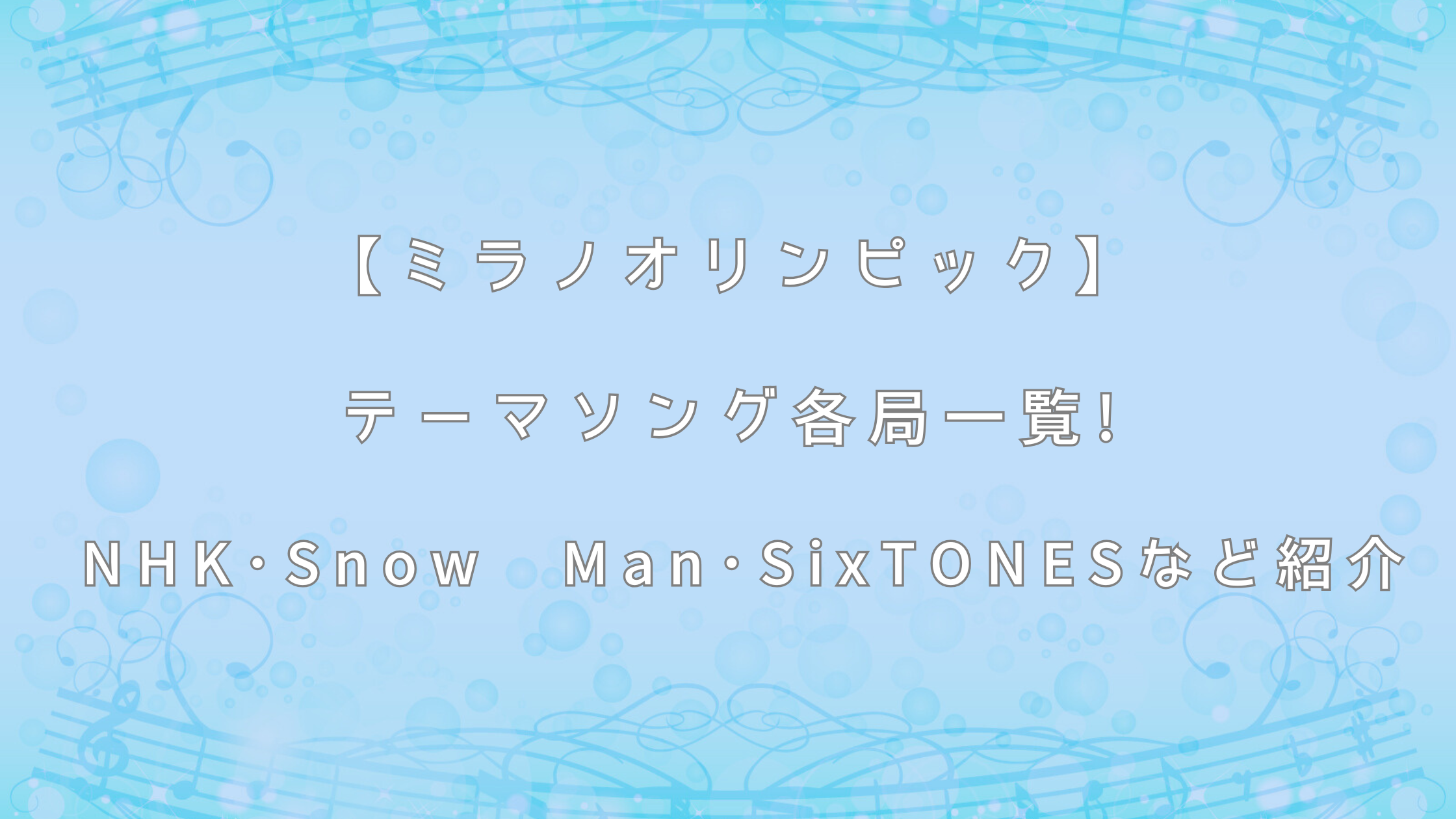 NHKのしっとりとしたウィンタースポーツテーマから、民放各局の力強いロックやポップスまで、まとめて紹介します。