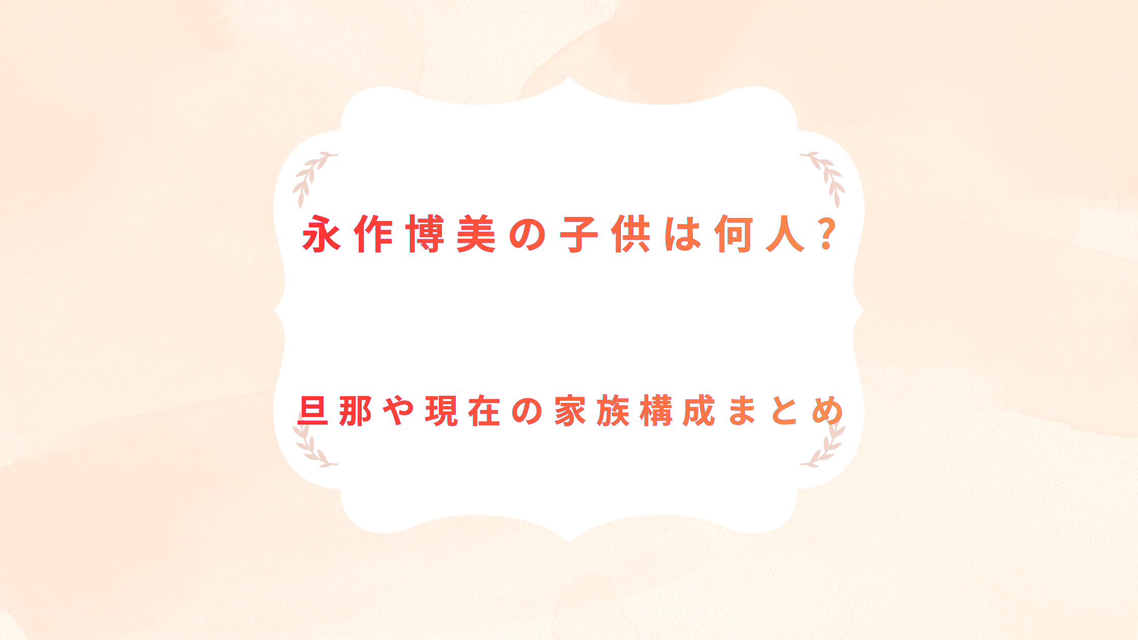 そんな永作さんのプライベートも気になるところ。今回は「旦那さんはどんな人?」「子供は何人いるの?」「現在の家族構成は?」といった気になる疑問を、まとめて調べてみました。