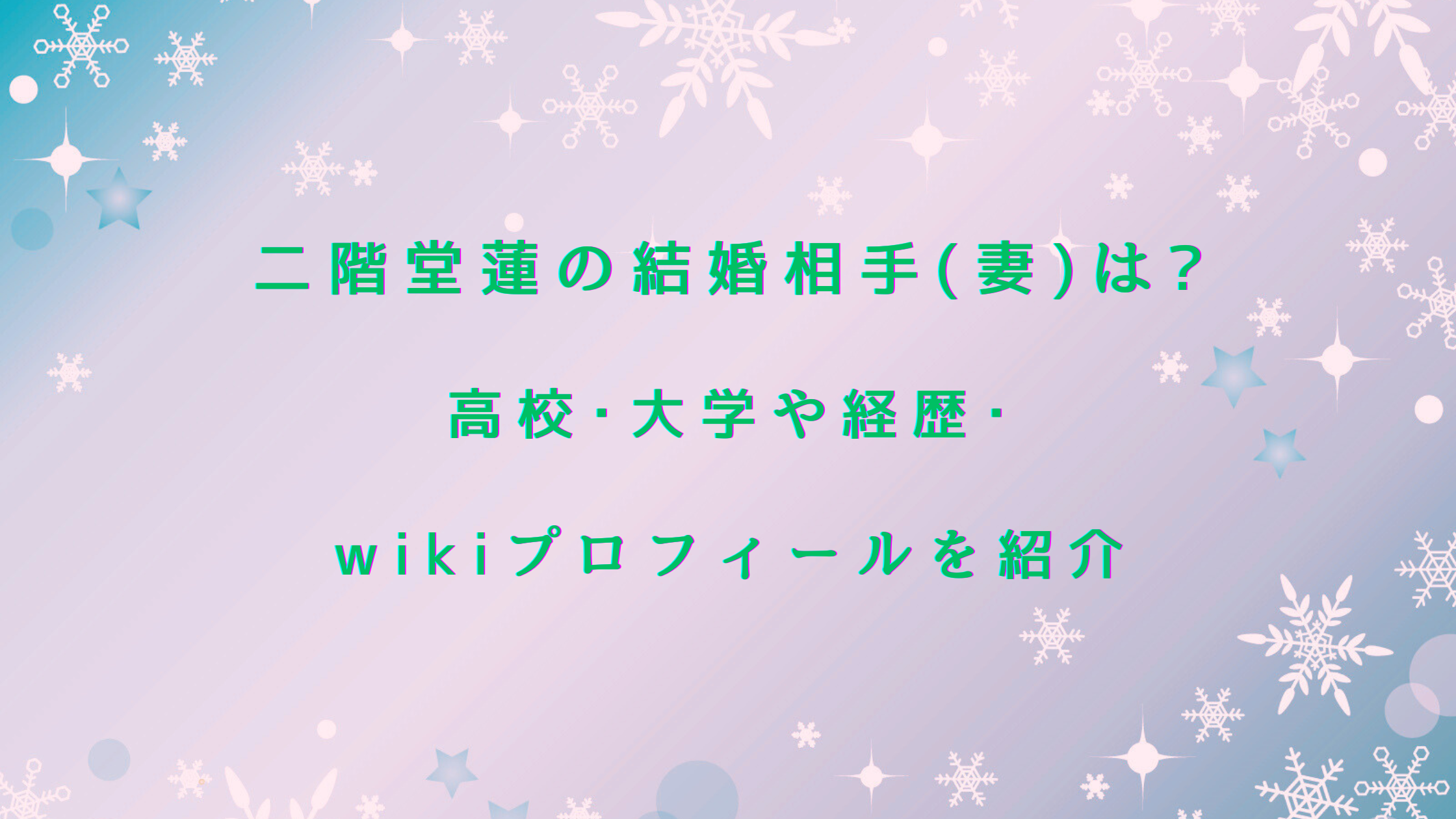 二階堂蓮の結婚相手(妻)は?高校・大学や経歴・wikiプロフィールを紹介