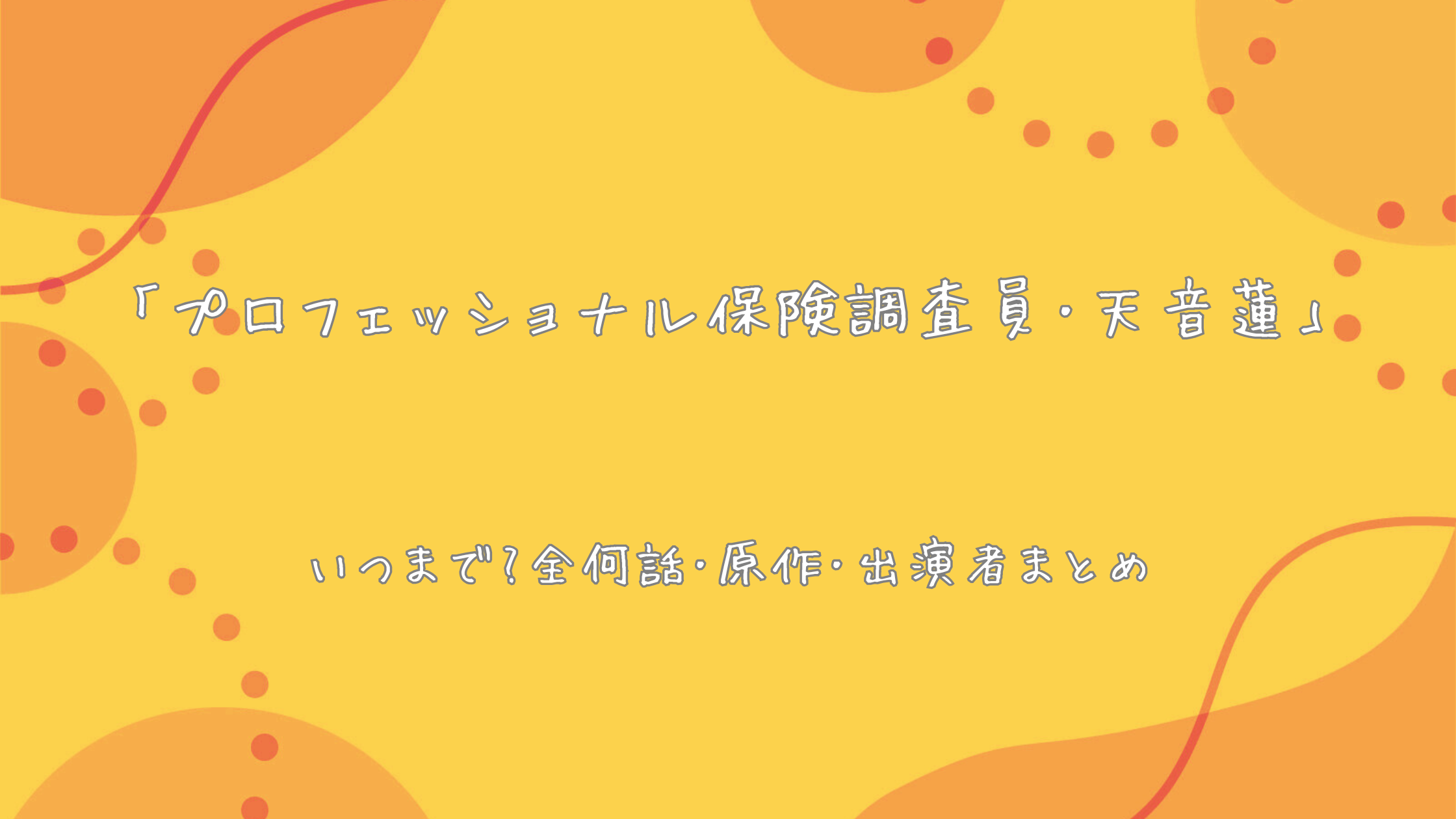 「プロフェッショナル 保険調査員・天音蓮」は、完全オリジナル脚本によるドラマ作品です。原作小説やマンガは存在せず、脚本家の大石哲也さんがオリジナルストーリーとして書き下ろしました。