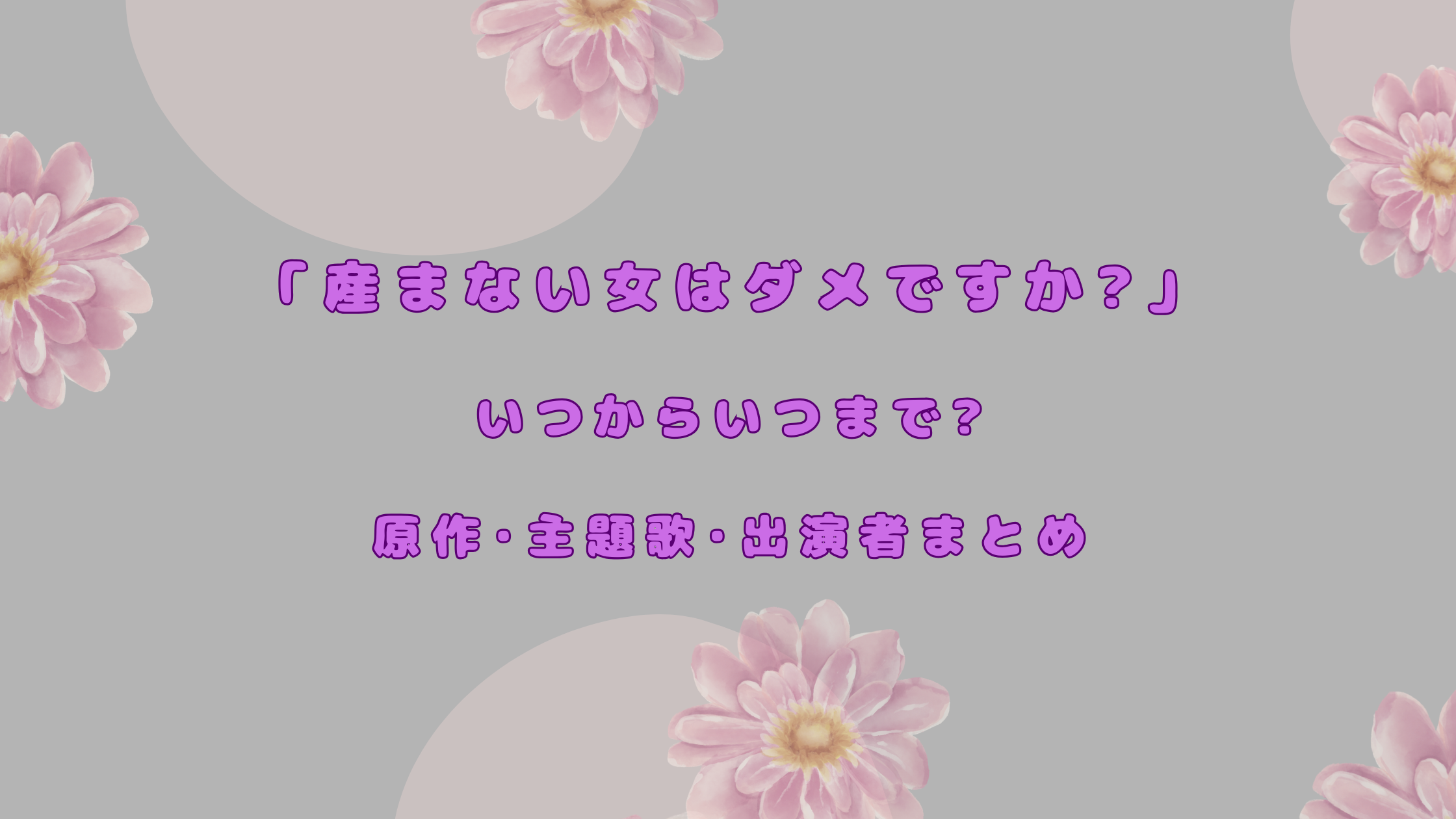 2026年3月30日から放送がスタートする社会派ヒューマンドラマ『産まない女はダメですか? DINKsのトツキトオカ』について紹介しました。